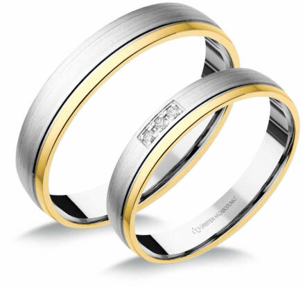 Fehér-sárga arany karikagyűrű gyémánt kövekkel.