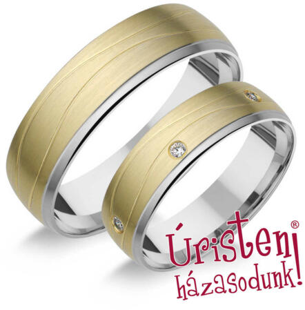 Fehér-sárga arany karikagyűrű gyémánt kővel.
