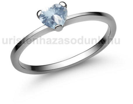 Fehér arany eljegyzési gyűrű szív alakú, akvamarin kővel.