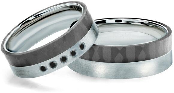 Esküvői karikagyűrűk: karbon és titán, lapos, 6 mm és 7 mm
