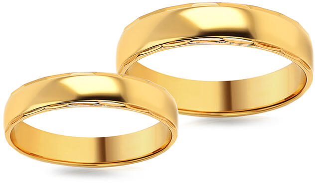 Ezek a klasszikus dizájnú, 5,5 mm széles karikagyűrűk sárga aranyból készültek, enyhén lekerekített profillal. A gyűrűk felületi kezelését magasfokú polírozás képviseli. A karikagyűrűk belső profilja lekerekített, ami biztosítja a kényelmesebb viselést. A jegygyűrűk méretét külön-külön választhatja ki - a női és a férfi gyűrűjét egyaránt. Amennyiben be sz