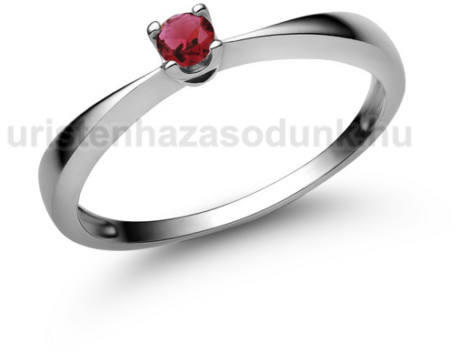 Szolid, klasszikus, fehér arany eljegyzési gyűrű briliáns csiszolású rubin kővel.