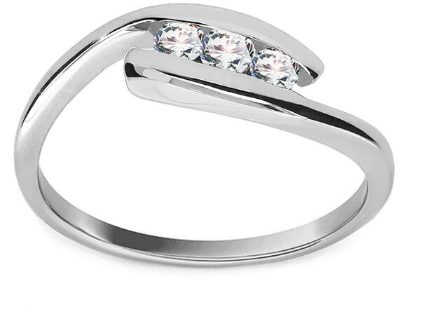 Fehér arany tónusok és egy vonzóan csillogó, tiszta cirkónia trió tökéletes ragyogást kölcsönöz kezének. A fehér arany vonalak szépsége a fényes kivitelnek köszönhetően kiemelkedik. Válasszon egy gyűrűméretet a rendelkezésre álló méretek közül.