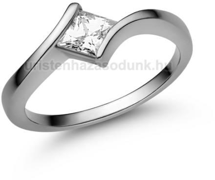 Eljegyzési gyűrű készletről. Az eljegyzési gyűrű cirkónia követ tartalmaz, amelyet 14 K fehér arany ölel körül, így a legjobb minőségű ékszerrel lepheted meg szíved választottját. Ezzel a gyűrűvel szavak nélkül is érzékeltetheted, hogy szerelmed iránta nem tompul, csak úgy, mint ahogy fénye sem.