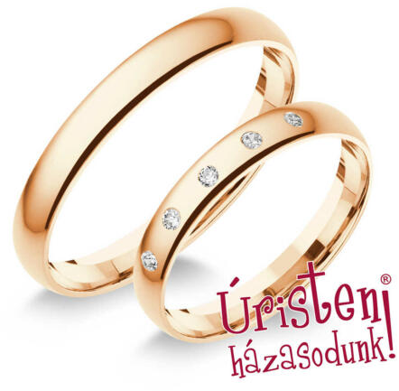 Klasszikus, kézzel készített, rozé arany karikagyűrű 5 gyémánt kővel ékítve.