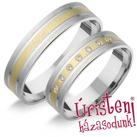 Fehér-sárga arany karikagyűrű cirkónia kövekkel.