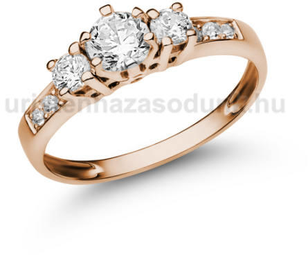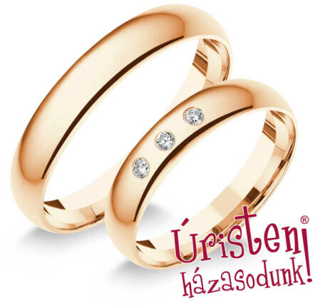 Klasszikus, rozé arany karikagyűrű. Kézzel készített, kívül-belül domború profillal, 3 cirkónia kővel díszítve.