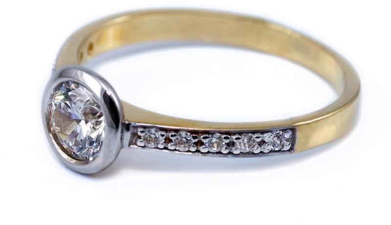 Fehér-sárga arany karikagyűrű gyémánt kövekkel.