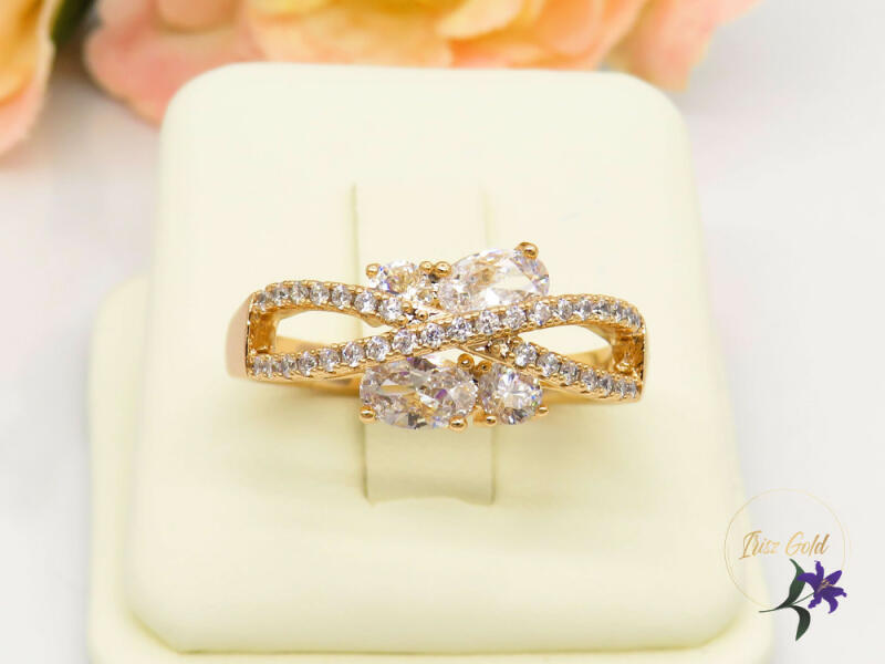 Goldfilled egyedi formatervezett magasított gyűrű . Fehér kövekkel , fölsőrésze tűcirkóniával díszített Szin: 18K Szélesség: 12mm magasítás 5 mm A forgalmazott divatékszerek alapanyaga nikkel és ólommentes ezért többnyire nem okoznak allergiás tüneteket, nyugodtan hordhatják fémérzékeny emberek is. Általában nem színezik a bőrt és más divatékszerekhez képest nag