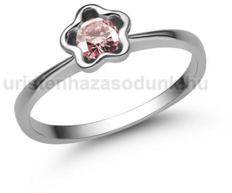 Különleges eljegyzési gyűrű rózsaszín zafír kővel, virágos foglaltban.