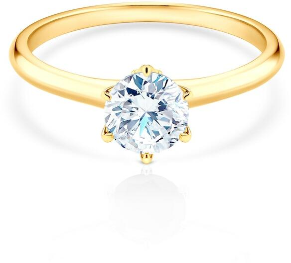 Csavart stílusú, sárga arany eljegyzési gyűrű 0.18 ct-os gyémánt kővel.