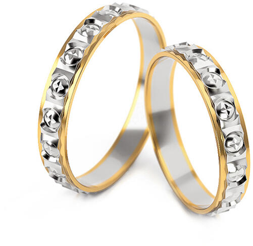 Tökéletesen kiegyensúlyozott dizájn, amely garantálja az örömteli, megismételhetetlen pillanatokat a nagy napon, amikor az Önök életútjai eggyé válnak. Méretre készített karikagyűrűk állnak az Ön rendelkezésére, amelyek egy életen át megőrzik szerelmüket. Kombinált, 14 karátos aranyból készült, 3 mm széles jegygyűrűk, lapos profillal. A karikagyűrűk belső leke