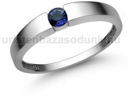 Praktikus viselésű, fehér arany szoliter gyűrű kék zafír kővel.