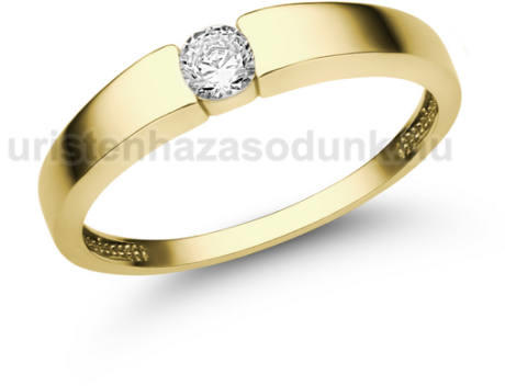 Praktikus viselésű, sárga arany szoliter gyűrű, 3.5 mm átmérőjű cirkónia kővel.