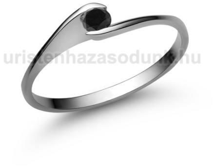 Praktikus viselésű eljegyzési gyűrű, csavart foglalattal, fekete gyémánt kővel középen.