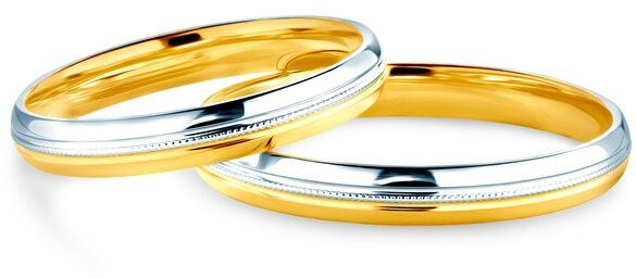 Esküvői karikagyűrűk: kétszínű arany, félkarika, 3 mm