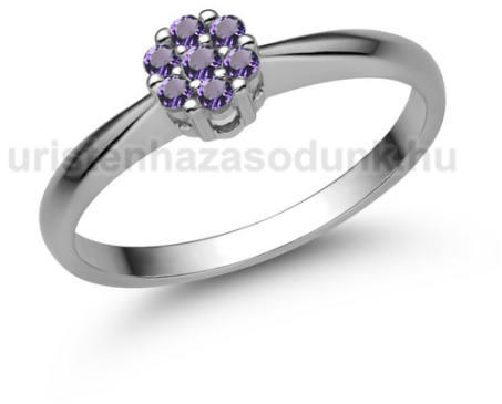Virág formát alkotó eljegyzési gyűrű 7 darab ametiszt kővel.