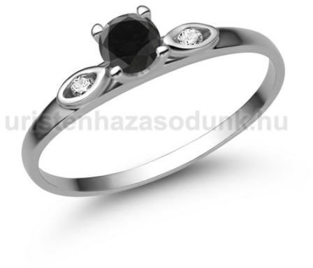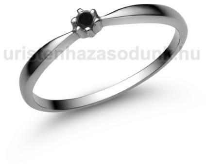 Egy köves fehér arany eljegyzési gyűrű, briliáns csiszolású fekete gyémánt kővel.