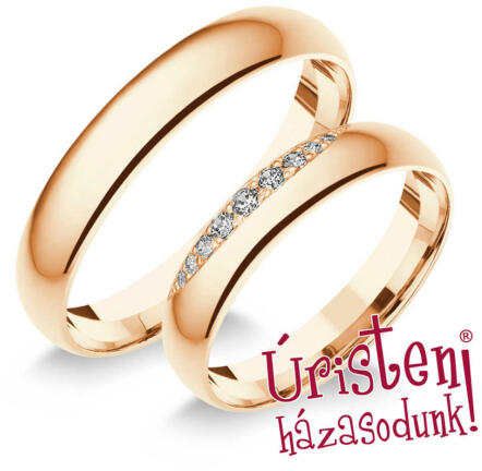 Kézzel készített, hagyományos, rozé arany karikagyűrű, 9 cirkónia kővel díszítve, mandula formájú foglalatban.