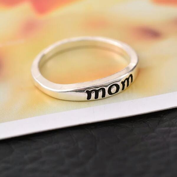 Gyönyörű "Mom" (Anya) feliratos gravírozott gyűrű.