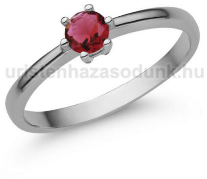 Klasszikus, eljegyzési szoliter gyűrű rubin kővel, fehér arany foglalatban.