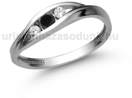 3 köves eljegyzési gyűrű, fekete gyémánt kővel és cirkónia kövekkel, praktikus kő foglalattal.
