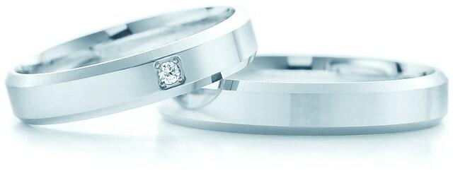 Esküvői karikagyűrűk: fehérarany, szakaszos profillal, 4 mm