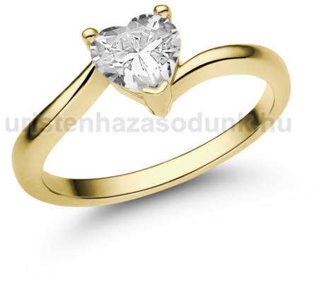 Szív formájú cirkónia köves, sárga arany szoliter gyűrű.