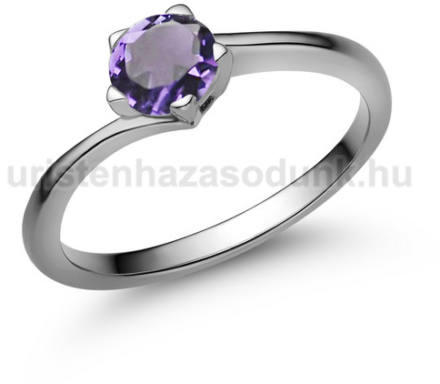 Fehér arany, szoliter eljegyzési gyűrű 5 mm átmérőjű ametiszt kővel.