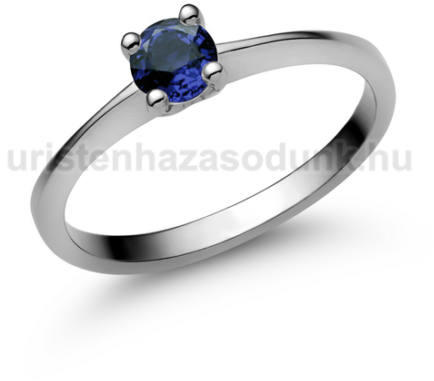 Kék zafír köves, eljegyzési, szoliter gyűrű fehér arany foglalatban.