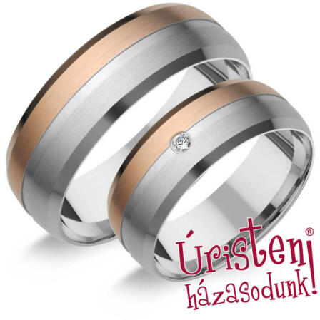 Fehér és rozé arany karikagyűrű gyémánt kővel.