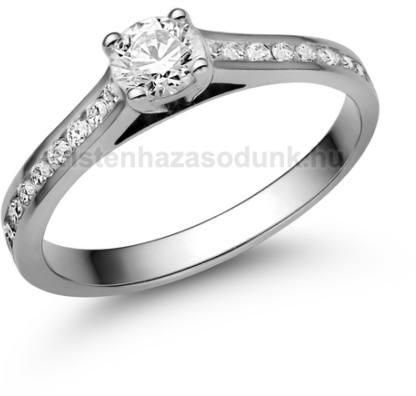 Nagy köves eljegyzési gyűrű, 0.50 ct-os gyémánt kővel középen és 3-3 darab kísérő gyémánt kővel oldalt.