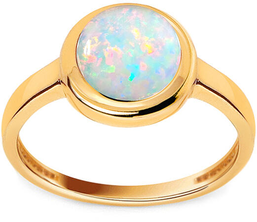 Egy rendkívüli ékszerre vágyik, amely szivárványos tükröződéseket hordoz magában? Ajánljuk figyelmébe ezt a kerek, fehér opállal díszített gyűrűt.