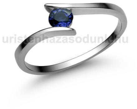 Fehér arany szoliter gyűrű, különleges foglalattal, kék zafír kővel a közepén.