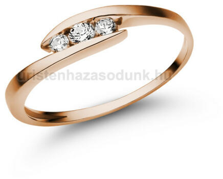 3 köves, modern, rozé arany eljegyzési gyűrű, cirkónia kövekkel, formabontó foglalatban.