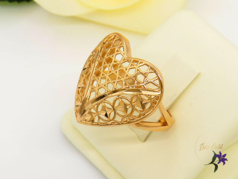 Goldfilled szívlakú csipkemintázatú gyűrű Szin: 18K Méret: legszélesebb 20x25x3mm A forgalmazott divatékszerek alapanyaga nikkel és ólommentes ezért többnyire nem okoznak allergiás tüneteket, nyugodtan hordhatják fémérzékeny emberek is. Általában nem színezik a bőrt és más divatékszerekhez képest nagyságrendekkel jobb kopásállósággal rendelkeznek. A fehér (ezüst)