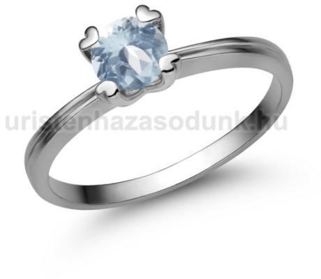 Fehér arany, szoliter gyűrű, akvamarin kővel különleges, szív formájú karmos foglalatban.