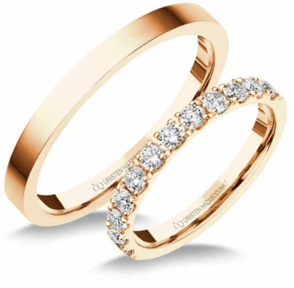Cirkónia kövekkel díszített, hagyományos, rozé arany karikagyűrű. Vékony, 2.5 mm széles sínnel, lapos külső profillal.