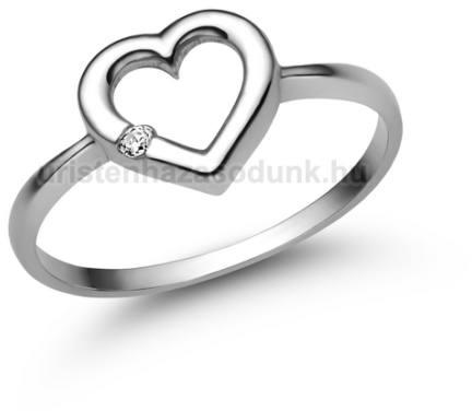 Szív alakú, fehér arany eljegyzési gyűrű, gyémánt kővel.