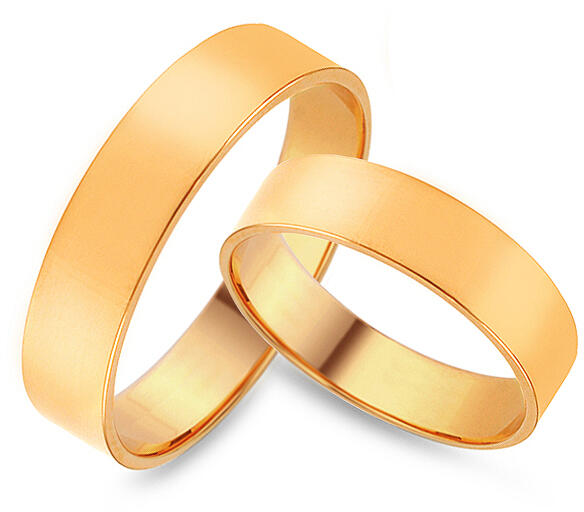 Sárga, tizennégy karátos aranyból készült jegygyűrűk, melyeknek szélessége 4 mm. A karikagyűrűk felülete sima és magasfokú polírozással kezelt. Ennek köszönhetően kiemelkedik az arany szépsége. A jegygyűrűk méretét külön-külön választhatja ki - a női és a férfi gyűrűjét egyaránt. Amennyiben be szeretné gravíroztatni az esküvő dátumát, vagy választottja