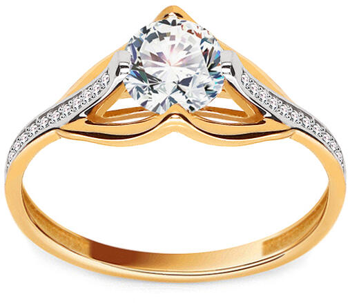 Klasszikus stílusú, sárga arany eljegyzési gyűrű cirkónia kővel.