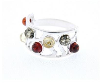 925 tisztaságú ezüst gyűrű, valódi borostyánnal. TULAJDONSÁGOK- 925 Sterling ezüst - Hétköznapi viselet - kö: borostyán - szín: multikolor (zöld, matt tej, sárga, konyak) - 3,5 gramm