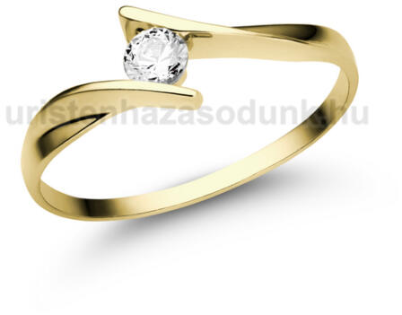 Csavart stílusú, sárga arany eljegyzési gyűrű 3.5 mm átmérőjű cirkónia kővel.