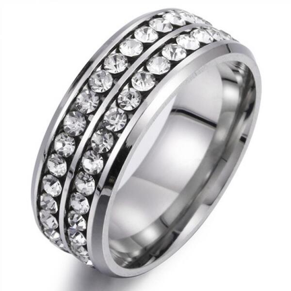 Keelan Gyűrű Szépséges Keelan gyűrű kedvező áron. A gyűrű unisex, a teljes kerületén két sorban cirkónia ékkövekkel díszített. Az ékszer nem tartalmaz nikkelt, ezért érzékeny bőrű emberek is viselhetik. Tulajdonságok: A gyűrű mérete: 59mm (kerület) Díszítése: Cirkónia ékkövek Anyaga: Nemesacél 316L Szín: Ezüst Az útmutatót a gyűrű méretének kiválasztás