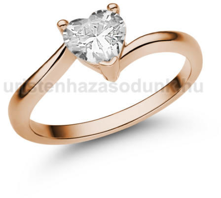 Szív formájú cirkónia köves, rozé arany szoliter gyűrű.