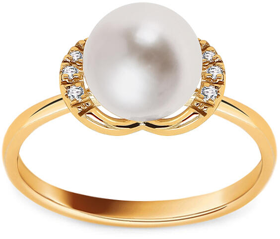 Elegáns gyöngygyűrű gyémántokkal, sárga arany, modell FLBR019
