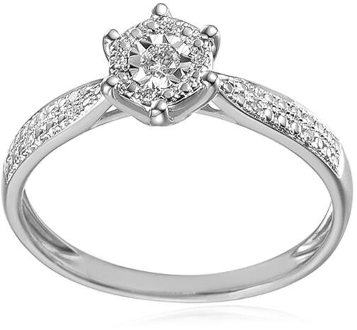 Bemutatjuk a luxus Kaitlyn eljegyzési gyűrűt az Illusion kollekcióból , amely precíz kivitelezésével nyűgöz le. Ez a gyűrű 9k fehéraranyból készült, ami garantálja tartósságát és ragyogó megjelenését. Domináns eleme a 0,09 karátos természetes gyémántforma, amely H színű és SI1 tisztaságú. Az egyedülálló Illusion kialakítás vizuálisan megnöveli a gyémántot