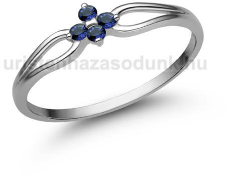 Virág formában elhelyezkedő 4 kék zafír kővel ékített eljegyzési gyűrű.