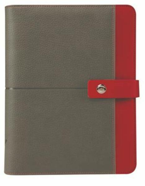 Kalendárium, gyűrűs, betétlapokkal, L, műbőr, SATURNUS, 426, szürke-piros (NKL226SZP) sportos kivitelű, műbőr borító patenttal záródik lapok 70 g, chamois papírból tartalma :NK*311 betétlapcsomag betétlap mérete: "L": 146x210 mm ("A5", 1)