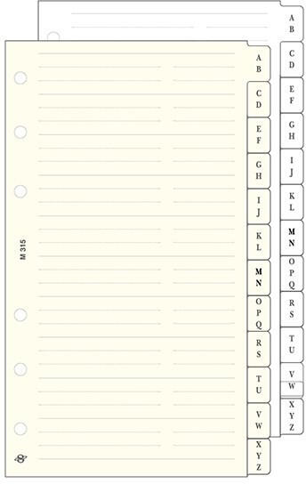 Gyűrűs kalendárium betét SATURNUS M315/F telefonregiszter fehér lapos Telefonregiszter 12 lap/csomag Mérete: M: 95 x 171 mm Fehér.